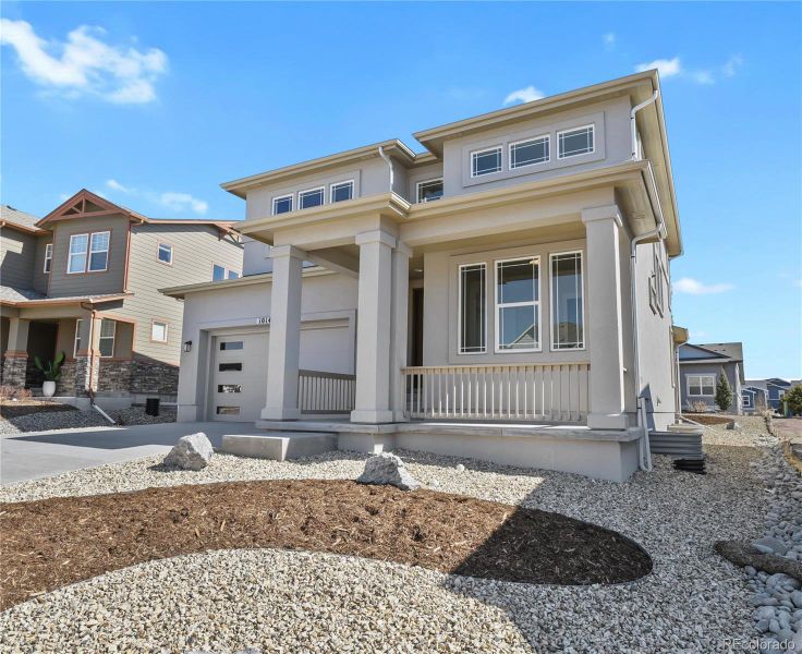 Modern design, generous living space, and quality finishes come together in this new construction home in the highly desirable Cordera community. Offering over 3,100 square feet of living space with 5 bedrooms and 4 bathrooms, the layout is designed to provide both comfortable living and flexible space for guests or entertaining. The main level features LVP flooring throughout and a welcoming great room with soaring ceilings and an expansive electric fireplace. The kitchen is well-appointed with quartz countertops, a center island, crown moulding, wall oven, gas cooktop, and pantry, opening seamlessly to the dining area with walk-out access to the yard. A main-level bedroom and full bath add versatility for guests or office space. Upstairs, the primary suite offers a spacious retreat with a five-piece bath finished with quartz counters, soaking tub, and stand alone shower with bench and a walk-in closet. A loft creates additional living space, while two additional bedrooms and convenient upper-level laundry complete the floor. The finished basement expands the home with a spacious family room, fifth bedroom, and full bath. Outside, the landscaped yard and 3-car tandem garage add convenience, all within Cordera’s established neighborhood known for its parks, trails, and community amenities!