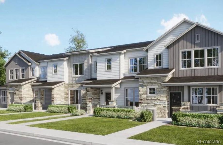 Modern comfort and easy living come together in this newly built two-story townhome. The main level features an open-concept design where the kitchen flows seamlessly into the great room, highlighted by a spacious island perfect for casual dining and entertaining. Upstairs, the owner’s suite provides a peaceful retreat with a private, spa-inspired bath. A secondary bedroom, full guest bath, and conveniently located laundry room complete the upper level. Stylish finishes throughout include luxury vinyl plank flooring, crisp white cabinetry, and sleek quartz countertops. Ideally situated near the Denver Premium Outlets for shopping and dining, and just minutes from Trail Winds Recreation Center with its fitness and outdoor amenities. Low-maintenance living meets modern design in this home estimated to be completed in May 2026.