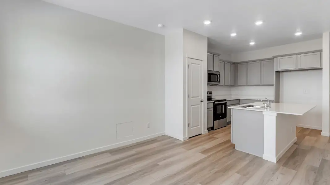 The home features 2 bedrooms, 2.5 bathrooms, a 2-car garage, and 1,255 square feet of well-planned space—ideal for buyers looking for a streamlined home without compromising on quality. Inside, the open main level creates a welcoming flow, while the kitchen stands out with quartz countertops, stainless steel appliances, and clean, contemporary finishes. Built-in smart home features add ease and efficiency to your daily routine.