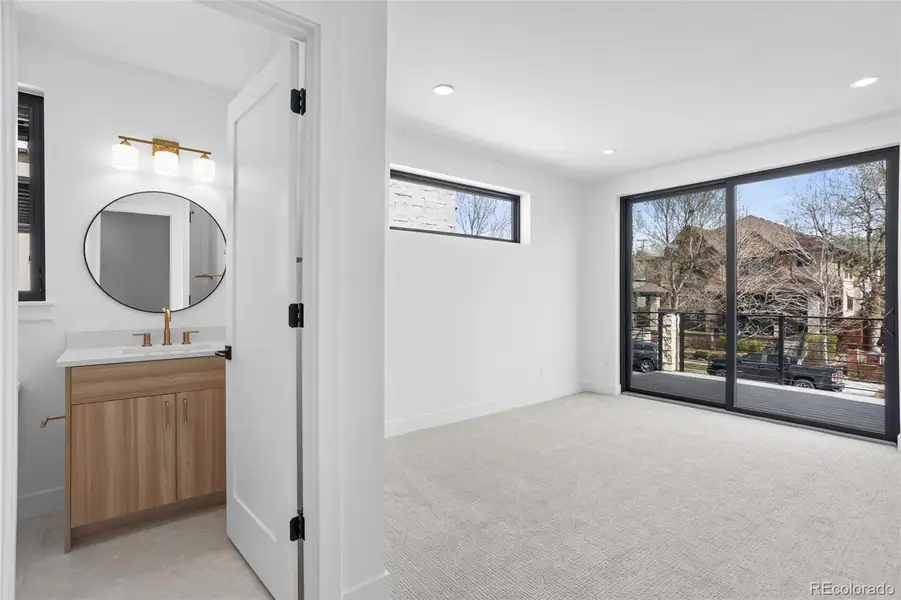 A statement in modern design, this architecturally curated Cherry Creek duplex reflects PBG’s uncompromising attention to detail and craftsmanship. Less than a 10 minute walk from the neighborhood’s premier dining/boutiques, the 5-bed, 5-bath residence blends organic textures with elevated, contemporary interiors. Natural stone and warm wood accents are framed by clean architectural lines, forming a timeless, design-forward exterior. Inside, wide-plank engineered white oak flooring and expansive glazing invite abundant natural light, defining the home’s bright interior. The living room is anchored by a sculptural fireplace framed by refined wall detailing, creating a clean and sophisticated focal point. Designed as the heart of the home, the chef’s kitchen showcases custom two-tone cabinetry in satin white oak and soft white, accented by brushed nickel hardware, integrated Thermador appliances, and a statement waterfall island clad in Matarazzo leathered stone. Upstairs, the primary suite features a private balcony, gas fireplace, and wet bar, complemented by a spa-caliber bath finished in Matarazzo leathered stone and blonde ash KRO cabinetry. The bathroom showcases accent tile, dual wall-mounted champagne bronze faucets, a freestanding soaking tub, a glass-enclosed dual-head shower, and heated floors. A secondary en-suite bedroom and spacious laundry room complete this level. The rooftop level offers a bedroom and office, ¾ bath, wet bar, and expansive deck with city views and mountain views. The finished basement with soaring 10-foot ceilings expands the home with a recreation area, wet bar, full bath, additional bedroom, and optional fitness room. A private backyard with covered patio, gas hookup, and TV prewire extends the indoor/outdoor lifestyle. Detached two-car garage includes 220V capability and optional overhead storage. PBG industry leading 2-year builder’s warranty/8-year structural warranty. Prewired for speakers | No HOA | |Buyer to Verify All Details