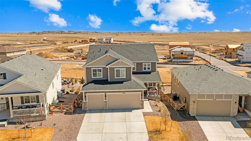 BUY THIS HOME AND MAKE NO MORTGAGE PAYMENTS UNTIL SETPEMBER OF 2026! Better than new and move-in ready in sought-after Banning Lewis Ranch! Built in 2024, this Richmond American Seth model offers over 4,454 sq ft of thoughtfully designed living space, ideal for military and relocation buyers seeking flexible, multi-generational living. Step inside to soaring ceilings, abundant natural light, and luxury vinyl plank flooring throughout the main level. The main-level office is perfect for working from home, and the inviting living room with fireplace creates a warm, welcoming space. The oversized gourmet kitchen features a massive quartz island, upgraded cabinetry, double ovens, and a built-in gas range—perfect for entertaining and everyday living. The spacious primary suite offers TWO walk-in closets and a luxurious 5-piece bath with double vanities, soaking tub, and walk-in shower. With 5 bedrooms and 3.5 bathrooms, there is room for everyone. The finished basement includes a private entrance, full kitchen, bedroom, bathroom, living room, and its own washer and dryer—ideal for guests or extended living. Additional features include an oversized 3-car garage (fits large trucks/SUVs), dual HVAC with central A/C, reverse osmosis system, all window coverings included, and garage bike/kayak pulleys. Enjoy community amenities including a pool, clubhouse, fitness center, parks, and trails. Conveniently located near Powers Blvd with quick access to shopping, dining, Fort Carson, and the Air Force Academy. This home offers space, upgrades, location, and versatility—better than new without the wait.