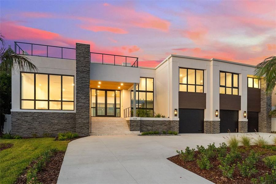 Open Bay views and unseen modern design on Davis Islands. This modern home is built for entertaining and ease of living by Forge Building Co. Enjoy spectacular open Bay views from much of the home with exceptional outdoor living spaces facing front and back. The home features 5 bedrooms, 5 and 2.5 baths, one room is a semi-detached guest suite, and an office, along with two outdoor kitchens: one on the back outdoor living space and one on the rooftop deck. Spectacular modern kitchen with built-in Gaggenau fridge and freezer, Gaggenau cooktop, and three Gaggenau wall ovens. The club room is just off the main living area and is the ultimate entertaining space. It includes a full wet bar, ice maker, and two built-in subzero 146 bottle wine coolers as well as plenty of room for pool table and has a double sided fireplace. The guest retreat off the Lanai offers a semi-connected bedroom for guests or family to enjoy. A second story "roof top oasis" will offer an amazing and unique space to relax or entertain. The 50'x15' pavered deck will include an outdoor kitchen complete with grill and fridge. Just off the roof top oasis, the semi-private Study with sliding glass doors offers a quiet place to relax or get some work done while enjoying endless open bay views. a bedroom completes the area. Spacious Master bedroom and bath with stunning views as well as private wet bar, private elevator access, sitting room, and fireplace. Separate Media room with fridges and plenty of space for any buildout you desire. Back porch will include an outdoor kitchen and overlook a beautiful pool and spa. Some of the appointments of the home include an elevator, 4 car tandem garage, impact-resistant window walls, almost all 2 story block construction, quartz and marble countertops thru out, built-out closets, and much more! Located on beautiful Davis Islands just across from the walking and bike path and just a short distance away from Davis Islands Village with many restaurants, shops, and bars. Bring your golf cart and enjoy the Island lifestyle with walking / biking paths, baseball fields, public tennis courts, public historic pool, two dog parks (one wet and one dry), a beach, public marina, and an airport. Located only minutes from Downtown Tampa, Water Street, Sparkman Wharf, and the Tampa Riverwalk, makes this neighborhood the most desired in South Tampa!