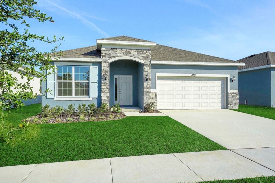 The Poinciana floorplan offers a well-designed, one-story layout that includes 4 bedrooms and 2 bathrooms, complete with a spacious two-car garage. This home is centered around a sizable great room, which seamlessly connects to the open kitchen and cozy café area, making it ideal for family gatherings and entertaining. The owner's suite, located at the back for added privacy, includes a walk-in closet and an en-suite bathroom. Three additional bedrooms are thoughtfully arranged to provide flexibility for family, guests, or a home office. A covered patio extends your living space outdoors, perfect for relaxation or dining al fresco. The Poinciana floorplan is designed for those seeking both functionality and comfort in a beautiful, single-story home.