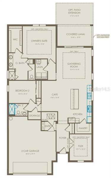 Experience the perfect blend of convenience, luxury, and elegance in this stunning one-story Mainstay home. With 2 bedrooms, an enclosed flex room, 2 bathrooms, and a 2-car garage, this home offers a thoughtfully designed layout to maximize both comfort and style. The open-concept kitchen, café, and gathering room are bathed in natural light, creating a spacious, inviting atmosphere. Tall ceilings, abundant windows, and a sliding glass door leading to the covered lanai seamlessly extend the living space, offering effortless indoor-outdoor living. The kitchen is a true centerpiece, featuring built-in stainless steel Whirlpool appliances (including a refrigerator), 42” white soft-close cabinetry, quartz countertops, decorative tile backsplash, and a spacious walk-in pantry. This kitchen is designed for both functionality and elegance, perfect for preparing meals and entertaining guests. The owner’s suite, located at the rear of the home for maximum privacy, is a luxurious retreat. The en suite bathroom is spa-like, featuring a frameless glass enclosed shower with a built-in bench, enclosed toilet, quartz-topped dual vanity, and a linen closet, creating the ultimate space for relaxation. The secluded secondary bedroom and bathroom provide additional privacy, making this layout ideal for those who value peace and quiet. At the front of the home, the enclosed flex room offers versatility—perfect for a home office, hobby room, or any purpose you desire. Designer curated finishes throughout include pendant pre-wire, chrome lighting and hardware, 2” faux wood blinds, comfort-height toilets, Whirlpool washer and dryer, Shaw luxury vinyl plank flooring in the main living areas, flex room, and bedrooms, and tile in the bathrooms and laundry room elevate the home’s style and comfort. For the tech-savvy, this home is equipped with a smart thermostat, video doorbell, and LED downlights. Practicality and convenience are also prioritized, with ample storage space including two linen closets, storage closet, spacious pantry, and a large walk-in closet in the owner’s suite. This home offers the ultimate combination of elegance, modern convenience, and practicality—move-in ready and designed to make life easier. Don't miss the opportunity to experience luxury living at its finest.
