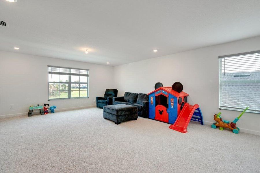 Experience elevated living in this 2024-built residence in the highly desirable Central Park community in Port Saint Lucie. This expansive two-story home offers 5 bedrooms, 3 bathrooms, and 3,734 sq ft of thoughtfully designed living space, blending modern style with everyday comfort. Situated on a premium corner lot directly across from resort-style amenities, the home features a bright open-concept layout ideal for entertaining. Enjoy a screened-in patio overlooking an oversized waterfront backyard, complete with privacy bushes for a serene outdoor retreat. The luxurious primary suite offers a private escape with a spacious en-suite bath and closet space. Additional bedrooms provide flexibility for family and a guest bedroom with full bathroom on the first floor.