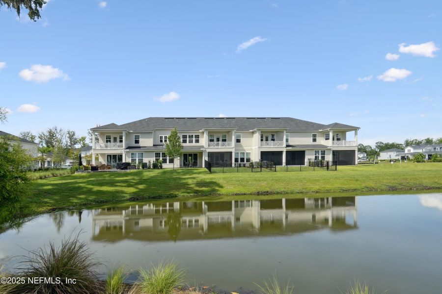 RIVER VIEW! This exquisite new townhome by Toll Brothers is perfectly positioned along the banks of the St. Johns River, offering breathtaking views and a grand 2-story great room. A boat slip is available for purchase, adding even more appeal to this waterfront gem. Located in the exclusive, gated Shores at Rivertown community, this home showcases a gourmet kitchen with white soft-close cabinetry, trash roll-out, lower cabinet pull-outs, and luxurious quartz countertops. Gorgeous wood floors, wood stairs, and open railings complete the home's refined style. Relax and take in stunning sunsets from the privacy of your covered lanai. As part of Rivertown, residents enjoy access to resort-style amenities, including pools, water slides, a lazy river, kayak lagoon, tennis and basketball courts, dog parks, sports parks, and miles of trails. The RiverClub is conveniently accessible via a gated golf cart path. Experience the ultimate riverfront lifestyle—schedule a tour today!
