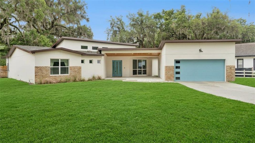 Welcome to this beautifully designed 4-bedroom, 2.5-bath single-family home in the desirable Paulucci Oaks community of Sanford. Built in 2024 by a local mid-century architect, this 2,154 sq ft home blends modern construction with timeless design. Inside, you’ll find a true mid-century layout complemented by elegant lighting fixtures and a unique polished concrete floor throughout! A charming breezeway connects the home to a spacious 2-car garage, while the fully wood-fenced backyard offers added privacy. Nestled among tree-lined streets and distinctive architecture, this quiet neighborhood is just minutes from Downtown Sanford’s shopping, dining, parks, trails, and the Sanford Zoo, with easy access to major highways
