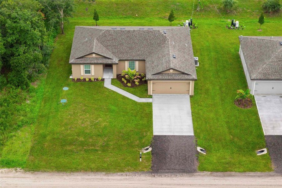 Ask us about our incentives, builder paid closing costs, & no down payment options! Move In Ready! This charming Caladesi plan in Vero Lake Estates faces east on a peaceful country road. A cute walkway leads from the driveway to a covered front porch, with beautiful Christmas Palms and mini two-tone green Umbrella Tree hedges enhancing the curb appeal. Enjoy a large wooded area on the south side, adding privacy and natural beauty. The backyard features a majestic Southern Live Oak and two newly planted Loblolly Bay trees. The well and water softener system are tucked in the northwest corner, surrounded by lush mini Umbrella Tree hedges. Just two blocks from a main road and close to local amenities in Vero Beach, Fellsmere and Sebastian! appliance models are subject to availability