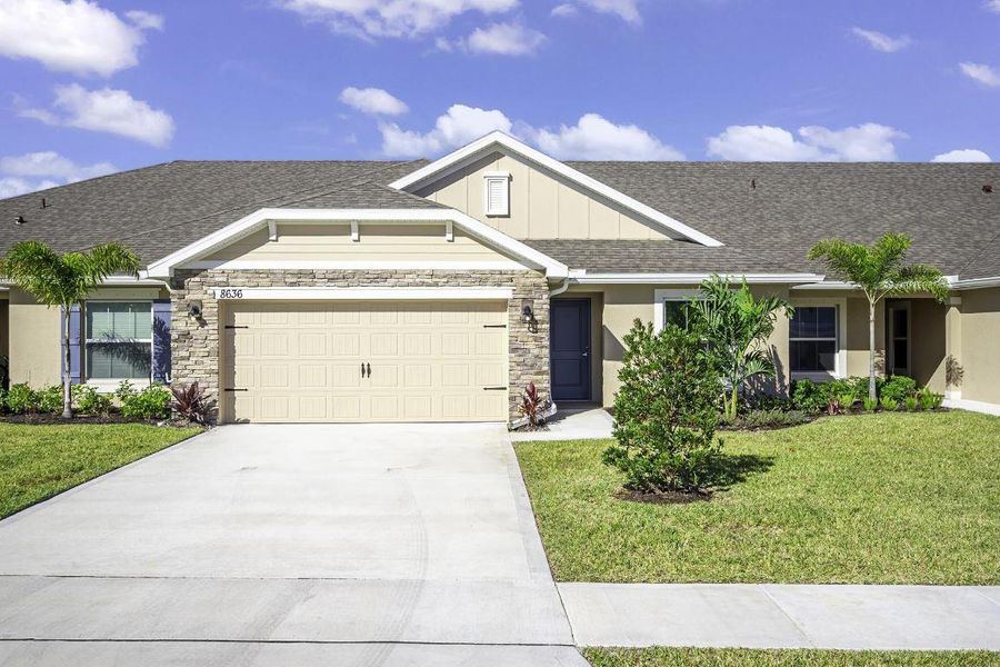 NEW HOME CONSTRUCTION PRICEE REDUCED MOVE IN READY, 30 DAYS W/GREAT BUILDERS INCENTIVES. Save $29,000 on move-in ready inventory Villa homes. Don't miss out on this very limited opportunity. Save thousands of dollars in closing costs when using the seller's approved lender, only $1,000 deposit. 3 bedrooms, 2 bathrooms. Home features vaulted ceilings, an open floor plan, separate walk-in shower and garden tub, 2-car garage & covered lanai with lake views. Enjoy the community clubhouse with Sand Volleyball, Tennis & Pickleball Court, Fitness Room, Heated Pool and more. Waterstone is nestled between 2 parks, quick access to I-95, the beach, dining, golf & Outlet mall. NO flood insurance required. Builder Warranty Included. Lawn care included.