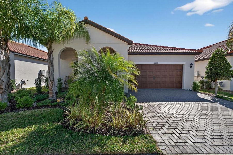 From the moment you arrive, you are welcomed by stunning curb appeal featuring a paver driveway, tile roof, and lush tropical landscaping. Inside, the home opens to a bright and spacious layout with soaring ceilings, neutral tones, and wood look tile flooring that flows seamlessly throughout the main living areas. The open concept design creates an ideal setting for both everyday living and entertaining, with a generous living room, dining area, and a beautifully appointed kitchen all working together effortlessly.