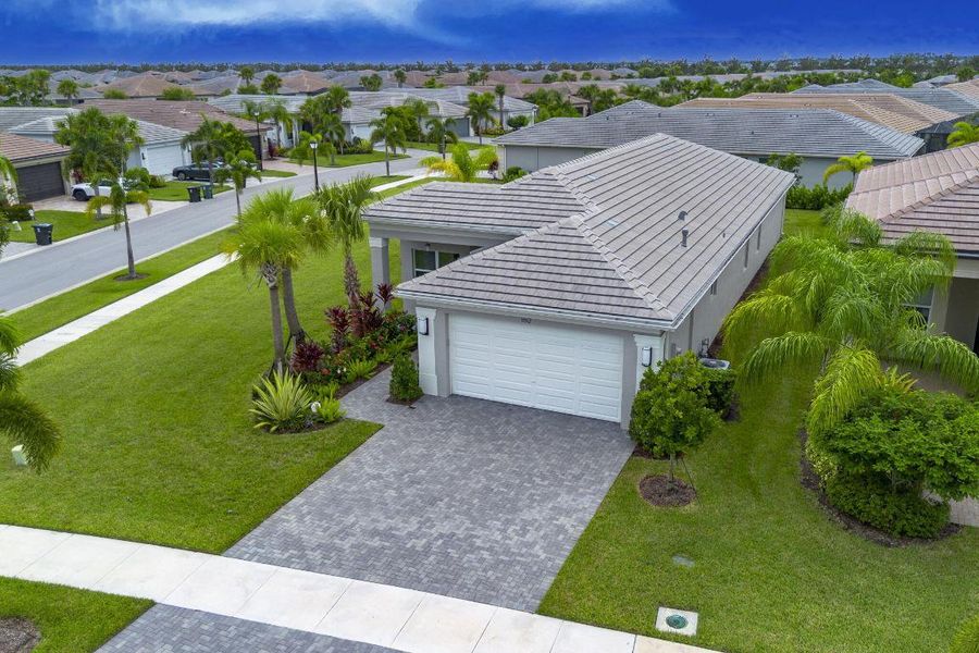 Beautiful ''Sierra'' model in Valencia Grove at Riverland! This 3 bed, 2 bath home includes a flex room perfect for a den or office. Situated on a corner lot with extra green space and a partial lake view. Located in a premier 55+ active community offering resort-style amenities: onsite café/bar, resort pool, card rooms, sports lounge, grand social hall, and an incredible sports center with tennis, pickleball, bocce, and a state-of-the-art arts & culture center. Interior features include dark wood cabinets, granite countertops, 18'' tile throughout, and all impact windows and doors. The primary suite offers dual vanities, large walk-in closet, and walk-in shower. Close to dining, shopping, golf, I-95, and Cleveland Clinic.