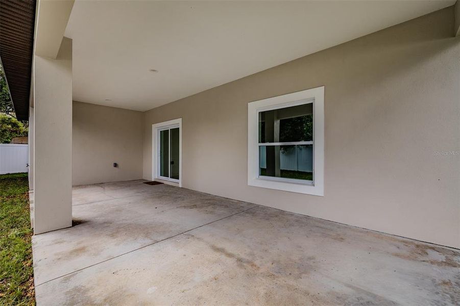 Looking for new construction but don’t want the cookie-cutter neighborhoods with HOA or CDD fees? This is the one! This brand-new 3-bedroom, 2-bath home features a bright open floor plan with a spacious great room and dining area that flow effortlessly into the kitchen—complete with quartz countertops, a massive center island with bar seating, shaker cabinetry, and stainless steel appliances. Sliding glass doors open to a 27x11 covered lanai overlooking the fully fenced backyard and large side yard—ideal for relaxing or entertaining.