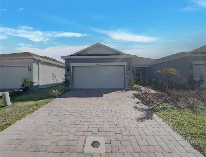 Welcome to 1909 Spring Shower Cir, where modern living meets comfort. The kitchen is a chef's dream, boasting all stainless steel appliances and a convenient kitchen island for meal prep. The accent backsplash adds a touch of elegance to the space. The primary bedroom is a true retreat, featuring a spacious walk-in closet for all your storage needs. The primary bathroom is designed with luxury in mind, with double sinks for added convenience. Outside, a covered patio awaits, perfect for enjoying a cup of coffee or entertaining guests. This home is a blend of style and functionality that is sure to impress.. Included 100-Day Home Warranty with buyer activation