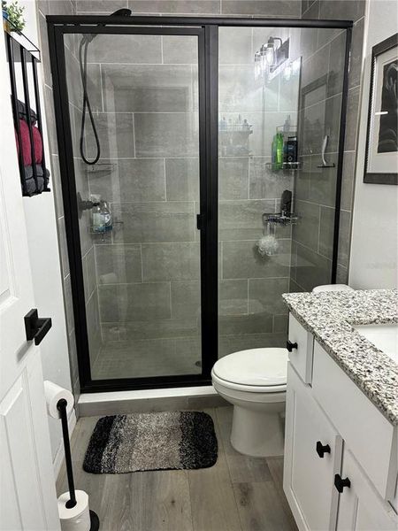 and the primary bath includes a stunning walk-in shower. Both additional bedrooms are generously sized.