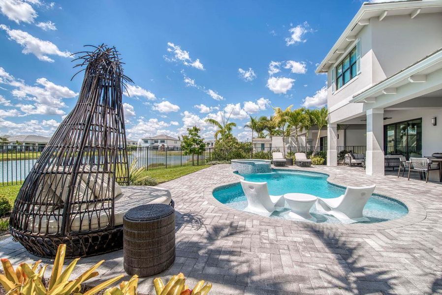 Outdoor living shines here, too. Enjoy lakefront views from the expansive covered patio, thoughtfully designed with distinct areas for lounging, dining, and recreation all surrounding a sparkling pool. With a fully fenced yard, this private outdoor space is perfect for both entertaining and family living. From its thoughtful layout to its luxurious finishes and unique features, including a 4-car garage and multiple lifestyle spaces, this home delivers the flexibility and elegance today's discerning buyers seek. Come see what makes this lakefront masterpiece so special. Schedule your private tour today. The outdoor retreat is nothing short of spectacular, with an expansive covered patio that provides ample space for a resort-style pool and spa, all while offering stunning views of the serene lake. Completion scheduled for November/December 2025