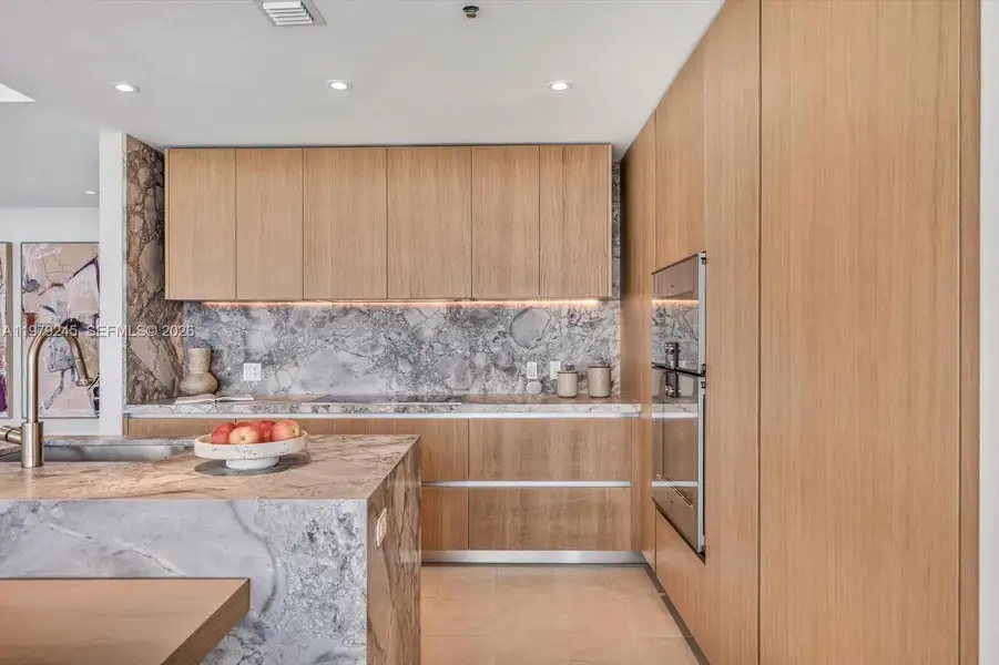Never-lived-in and exceptionally spacious, this 3-bedroom, 4-bathroom residence at Five Park offers 10-foot ceilings and 2,335 square feet of interior living space, complemented by oversized balconies and stunning sunset views of the Miami Skyline. The home features a large walk-in closet in the primary suite, a white oak Italian kitchen with quartzite countertops and Gaggenau appliances, and a marble primary bathroom with a soaking tub and separate shower. Additional highlights include a dedicated laundry room and thoughtfully designed living areas.