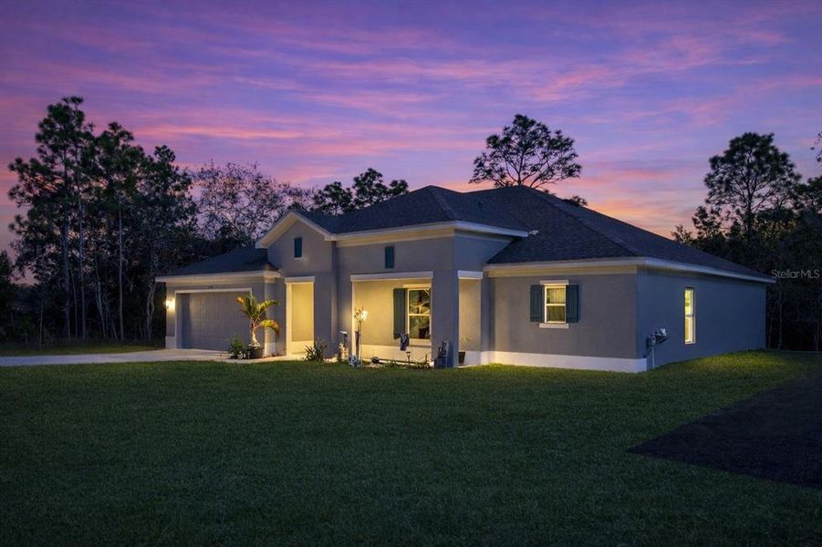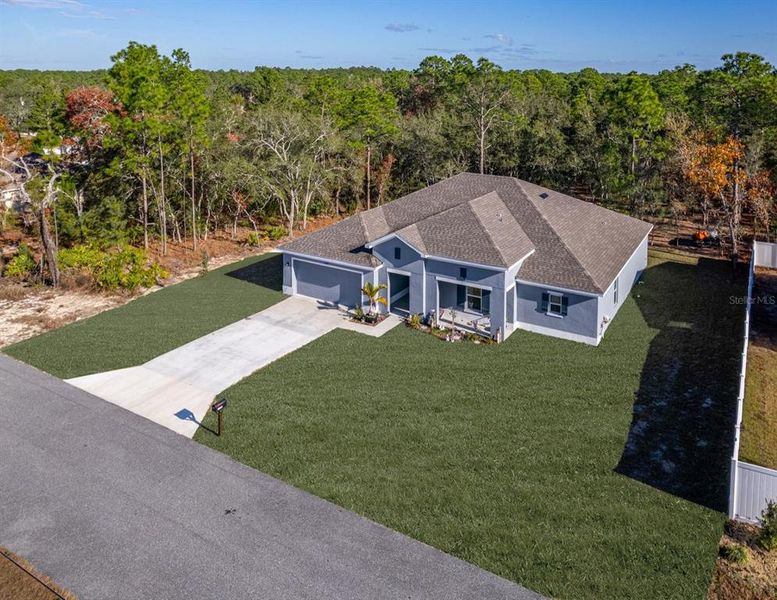 A LITTLE BIT COUNTRY... with the comfort and style of a 2025 home! Tucked on a private 0.56-acre homesite, this 4-bedroom, 2-bath, 2-car garage beauty offers a park-like backyard where you can relax, entertain, and enjoy the peaceful setting. Inside, you'll love the spacious open floor plan—bright, airy, and truly an open palette ready for your personal touch. The kitchen is the heart of the home with white shaker cabinetry with crown molding, granite countertops, and a full stainless appliance package including a French door refrigerator, microwave hood, dishwasher, and electric range. A breakfast bar makes casual meals easy, and the pantry gives you the storage you want. Unwind in the generously sized Primary Suite, featuring a large L-shaped walk-in closet and an ensuite bath with dual sinks, granite countertops, and a glass-enclosed walk-in shower. Bedrooms 2 and 3 each offer walk-in closets, while Bedroom 4 includes a built-in closet—perfect for guests, a home office, or hobbies. You'll also appreciate the large laundry room plus a spacious hallway closet for extra storage. There's outside space for play, pets, gardening, parking your toys, or simply enjoying the peace and privacy that Royal Highlands is known for. No HOA, No CDD Fees & No Deed Restrictions. The covered patio area is ideal for weekend BBQs, relaxing evenings, and outdoor entertaining. If you've been looking for almost brand new construction space, a private lot, and a home that feels like a retreat—this one checks all the boxes. Come see it and imagine the possibilities!