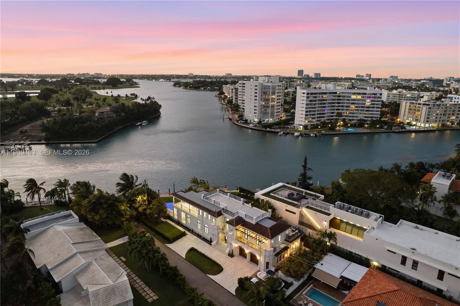 Spectacular waterfront new Construction with intracoastal views of Indian Creek Island also known as "Trillionaires Bunker". Best Location. Six bedrooms with seven bathrooms plus additional room, large infinity pool with spa and swim jets for exercise, hammam with steam, two kitchens designer finishes. Sweeping spiral staircase, elevator, extensive balconies, with a large rooftop terrace for entertaining with 360 views of the sunset and sunrise. Kohler Generator, Smart Home AI activated, dock for large boat. 2.5 car garage, Large picture windows and doors for natural lighting for each room. Walking Distance to the beach and Surfside Community Center with heated pool and Beach attendants. Nearby: the World-Famous Bal Harbour shops, fine restaurants. 5 star hotels, best schools and houses of worship.