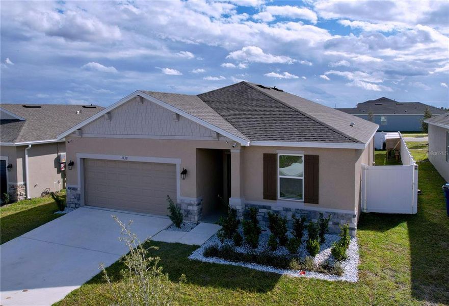 Recent enhancements include a vinyl fence and a screened-in lanai, both added in 2025, providing privacy and a comfortable outdoor living space. Enjoy a peace of mind with an installed Lorex NVR security system. New construction 1 year workmanship warranty active through 2-20-26 which covers the roof, countertops, doors, windows, and finished floor services. 2 year distribution systems warranty through 2-20-27 covers electrical, plumbing, and mechanical distribution systems of the home! 10 year structural warranty through 2-20-35 covers the designated load-bearing elements of the home, including the foundation system, floor framing, load-bearing walls, and roof framing!