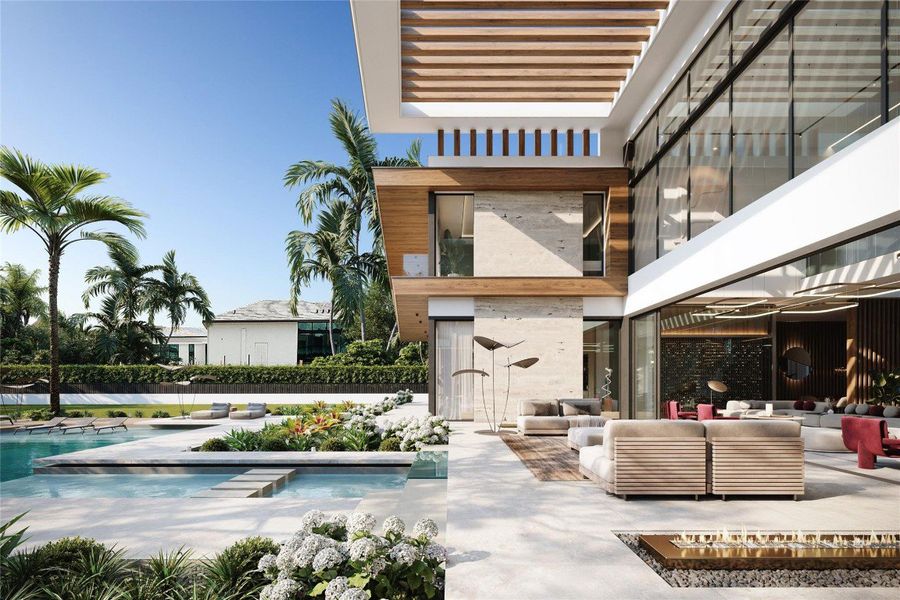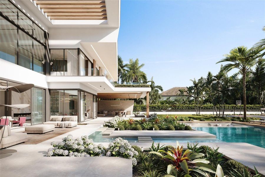 - completion date - end of February 2026!!! * * * 2.39 acres, sprawling 34,353sf total /23,977sf living area, this home is designed for those who demand excellence & do not compromise! Boasting main house 6 bedrms,8full baths+6 powder rms, g/h (2beds/2baths) w/Sep entrance & staff qtrs (2beds/1bath). Impressive 2,359sf man cave w/garage-17 ft high (can fit 3 lifts high), salon, spa, massage & full gym. Exclusive women ’ s wing w/garages. Expansive social spaces w/multi-retreat options. 500+bottle wine cellar & a captivating 3-sided f/p. Dual elevators. Gourmet showcase kit w/gaggenau luxury appls & a hidden butler ’ s pantry. Luxurious primary suite featuring a spa-like setting completed w/a trophy closet. Resort-style lanai w/a full summer kit, overlooking a modern pool/spa w/enchanting water & fire features.