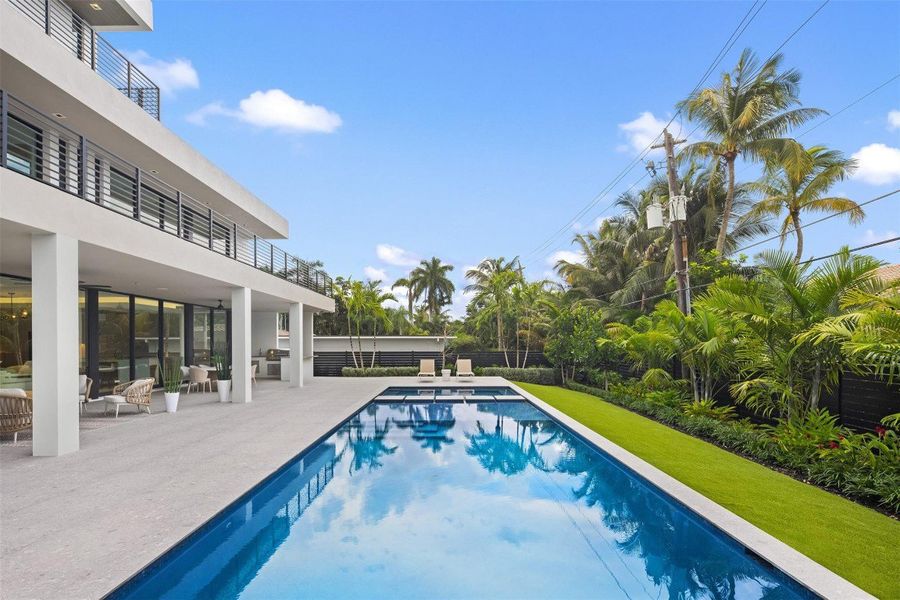 A 3-story masterpiece on a 15,500 sf lot in Fort Lauderdale's most exclusive gated beachside neighborhood. Just a short walk to the ocean and 2 miles from Las Olas shopping & dining. Designed by Tuthill Architecture redefining coastal sophistication w/ sleek designs, floor to ceiling glass windows & doors. Over 9,000 sf of outdoor and indoor living space, a 3rd-floor sky lounge with indoor/outdoor kitchen, 1/2 bathroom overlooking Lake Sylvia and the downtown Fort Lauderdale skyline. The floorplan embraces a seamless indoor-outdoor transition from every floor. A private elevator provides easy access to every level. Join the affordable Harbor Beach Surf Club, offering 300 feet of private beach access - Deepwater Marina in community with boat slips available to rent (ask for availability).