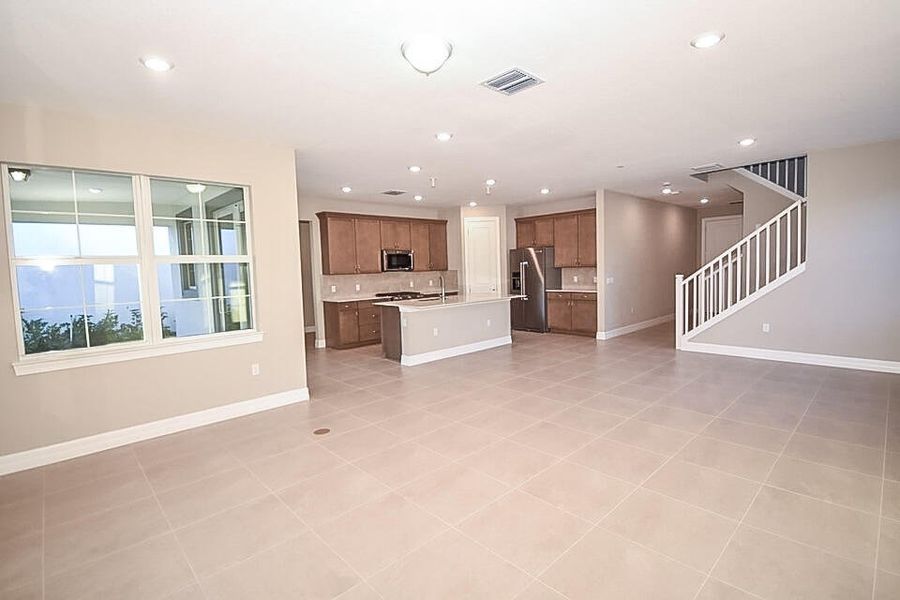 3-bedroom plus Den and Loft, 2 1/2 bath home features modern tile flooring, sliding doors for natural light, high-quality appliances, and a luxurious main bedroom with a spa-inspired bathroom. The home offers an open concept design, kitchen island, huge pantry, covered patio, guest bedroom downstairs and impact-resistant windows, ceiling fans and blinds. Residents have access to a Clubhouse, spanning 16,000 sq. ft., and is the heart of community life, featuring a resort-style pool, lap pool, children's splash area, cabanas, and sports courts. It's a place where friends meet for tennis, pickleball, or fitness, offering year-round activities. From fire pit gatherings to events, it promises a vibrant social scene for all.