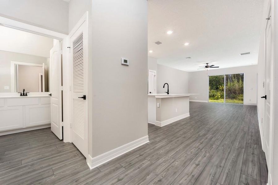Ask about our incentives, builder-paid closing costs, and more! The Patricio plan perfectly blends style and functionality. This inviting one-story home features a welcoming foyer and a spacious, open layout designed for comfort. The expansive family room is ideal for relaxing, while the chef-inspired kitchen, with a large island and breakfast bar, makes entertaining a breeze. The generous master retreat and two additional bedrooms offer plenty of space for the whole family. Enjoy top upgrades like granite countertops, stainless steel Whirlpool® appliances, walk-in closets, and front yard landscaping. All of this in the beautiful Celebration Pointe community, complete with fantastic amenities!