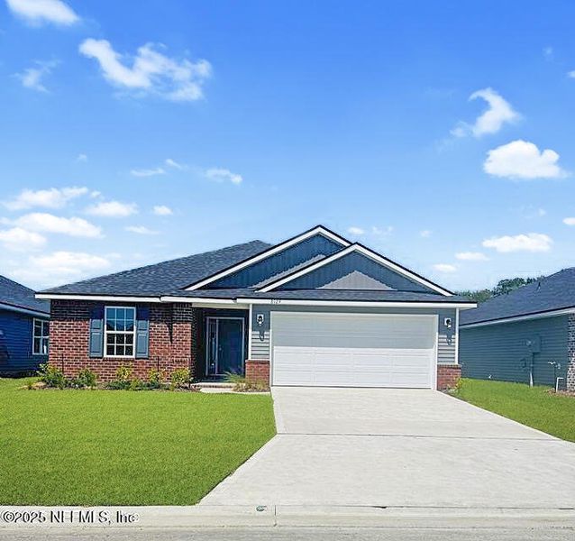 This home combines modern design with practical features and financial incentives, making it a strong option for buyers seeking value and comfort in a growing Jacksonville neighborhood. This home is eligible for up to $15k flex cash towards upgrades, buydown or closing cost. These 4 bedrooms and 2-bathroom home offer a split floor plan with soaring 10' ceilings. Modern open kitchen w/ island upgraded cabinets w/ pulls & crown molding, spacious pantry, as well as a lazy Susan for additional storage. Primary Suite boasts walk in closet, dual vanities, 4' tile walk in shower, linen closet & private water closet. Upgraded luxury vinyl flooring throughout w/ carpet limited to bedrooms. SummerGlen features a resident only recreational field, playground, pavilion with grills, picnic tables and seating area. Closing costs paid with use of approved lender (Excluded pre-paids/escrow items) Restrictions apply. Combination lockbox located on left side of home near water faucet.
