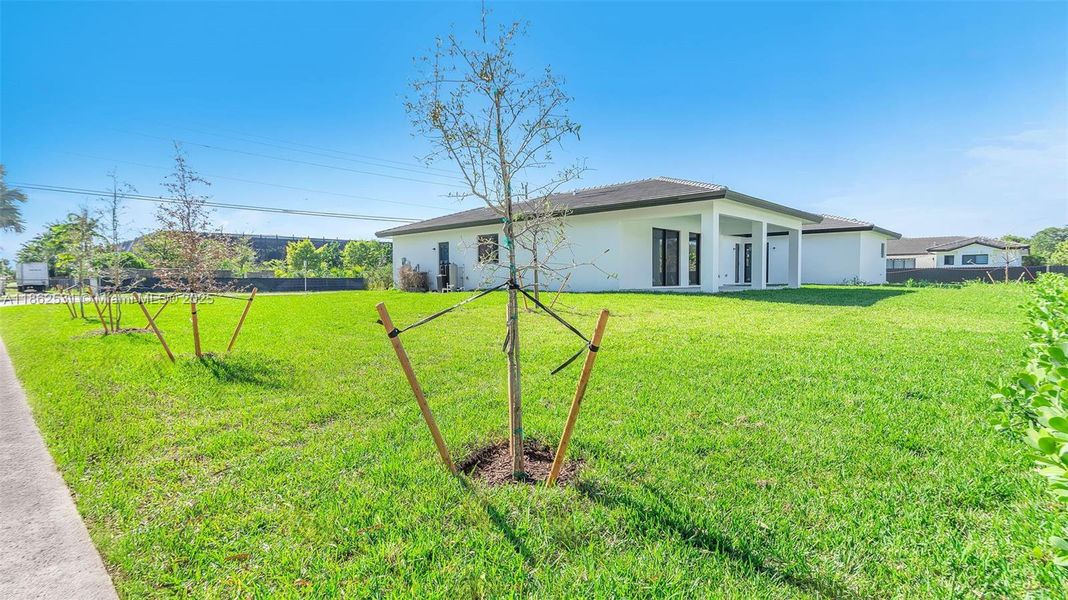 home with 5 bedrooms, 4 full bathrooms. Master bathroom whit his and her sinks and closets. Separate bathtub and shower. The kitchen flows withy the family room & great room through open concept. Stainless steel appliances and kitchen island. Covered terrace, high impact windows. 2 Car garage with space for more, with the circle paver driveway. Huge lot to make a pool and parking RV's or boat.