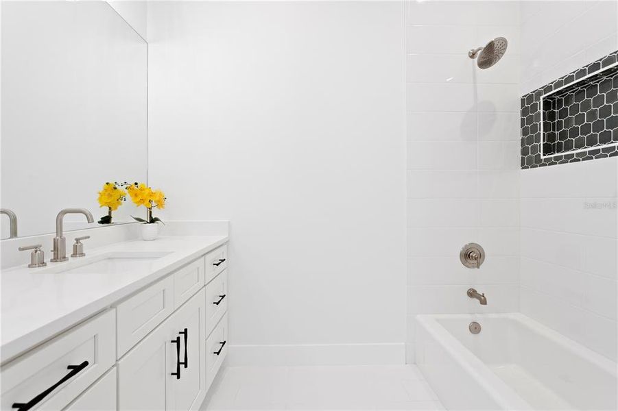 Welcome to this exceptional ONE-STORY, NEWER CONSTRUCTION, 3 Bedroom, 3 Bath PLUS Office/4th Bedroom home featuring a Saltwater Pool, Lanai, Outdoor Kitchen and oversized 2 Car Garage. Offering over 2500 square feet of luxurious living space, this home is perfect for entertaining and enjoying the ultimate Florida lifestyle. Located in FLOOD ZONE X and just minutes to Downtown Sarasota, this custom-built home boasts all BLOCK construction, a metal roof, maintenance-free aluminum soffits and fascia, Impact Rated Windows, Doors and Sliders, a tankless gas water heater and a professionally designed custom landscaping package. Interior features have been thoughtfully designed and include 12 ft 8-inch ceilings in the Great Room and Kitchen, 8 ft solid core doors and engineered hardwood floors throughout the home. The well-appointed kitchen is sure to please the most discerning chef with custom wood Shaker Cabinets, an oversized island, Quartz countertops, Z-Line Appliances, double oven, an induction range with custom hood and includes a convenient Dry Bar with floating wood-stained shelves and a wine refrigerator. The Primary Suite is a sanctuary and exudes elegance with tray ceilings, a custom design wall featuring detailed trim work and sliding glass doors providing private access to the outdoor pool and patio oasis. Primary Bath delights with a freestanding soaking tub, an oversized shower with rain head, a makeup vanity and Quartz countertops. Entertain with style in the Great Room complete with fireplace, 50-inch oversized chandelier and wall to wall 8 ft pocketing sliding glass doors opening to the Lanai and Saltwater Pool. 3 additional bedrooms, one featuring a decorative custom accent wall perfect for an office/flex room, are all generously sized with built-in closets. The Laundry Room includes a custom tile floor, built-in cabinets, Quartz countertops and a Samsung Smart washer and dryer. Easy access to Downtown, the Legacy Trail, Payne Park, Sarasota Memorial Hospital, Siesta Key and all area beaches makes this Move-In Ready home a must see! Embrace Sarasota living at its finest!