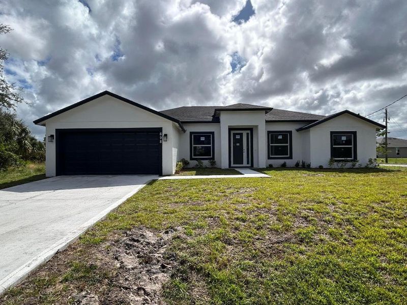 Beautiful Brand New Corner Lot Home, Extended Size Lot, with over $50K in upgrades, 4/3/2, High Ceiling, coffer ceilings on great room and master bedroom, shower and jacuzzi on master bedroom, farm style sink, tiles throughout, granite countertops on kitchen and bathrooms, stainless steel appliances, Impact doors and windows, Impact glass front door and impact double rear French doors, back porch, great neighborhood, good schools and close to everything... a must see...Interior Photos from Identical model.. Color may vary..