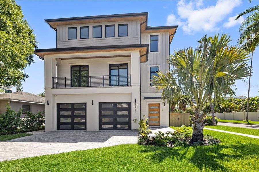 Welcome to refined coastal luxury in the heart of coveted Davis Islands. This brand-new 6-bedroom, 5-bathroom residence spans 3,986 square feet and blends elevated design with modern convenience at every turn. Real oak wood floors flow throughout the home, setting a warm, timeless tone, while a striking fireplace centerpiece anchors the main living area and opens to a poolside balcony overlooking your heated saltwater pool and spa - perfect for effortless indoor-outdoor living. The gourmet kitchen is a showpiece, designed for both entertaining and everyday indulgence. It features a 48-inch gas Café range, an expansive island, and a fully equipped butler’s pantry complete with a built-in Bosch espresso machine. The second floor also offers two versatile bedrooms ideal for guest suites or home offices, a guest bathroom, and a dedicated AV closet. Retreat to the third floor, where four bedrooms each enjoy their own en-suite bathroom, alongside a conveniently located laundry room. The primary suite is a true sanctuary, boasting a private balcony with breathtaking views of the Tampa skyline, dual walk-in closets, and a spa-inspired bathroom with dual vanities, a frameless glass shower, and a standalone soaking tub. The lower level provides flexible space ideal for a private gym or additional storage, along with a spacious 4-car garage. Built for both security and seamless living, this smart home is equipped with cameras, speakers, and surround sound throughout, all controlled via a secured Control4 system. Thoughtfully designed, impeccably finished, and ideally located, this exceptional Davis Islands home offers luxury living at its finest.