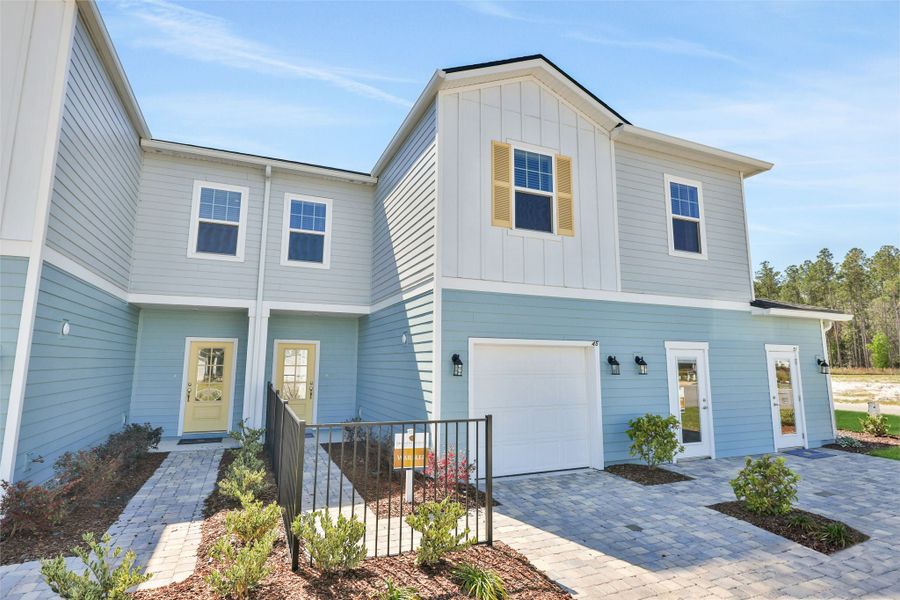 Welcome to 45 Woods Lane, featuring the thoughtfully designed Warbler Townhome—a perfect blend of style, comfort, and functionality. The main level showcases an open-concept layout where the kitchen seamlessly overlooks the living and dining areas, creating a bright, inviting space ideal for both everyday living and entertaining. A convenient powder room completes the first floor.Upstairs, the spacious primary suite offers a relaxing retreat with a generous walk-in closet. Two additional bedrooms provide flexibility for guests, a home office, or growing needs, while a well-appointed hall bath serves the secondary spaces.This home is enhanced with luxury vinyl plank flooring throughout the first floor and a beautifully appointed kitchen featuring white cabinetry, a coordinating backsplash, and a full suite of appliances, including a refrigerator and dishwasher. A one-car garage adds convenience and additional storage.