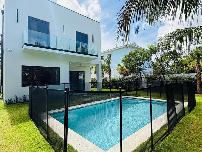 Brand New Construction. This sleek contemporary style home is on Auburn Drive in the Intracoastal community of College Park. Located one block from the waterway, this 4 bedroom 3.5 bath, over 2900 sf home has an open floor plan, European white oak floors throughout, stunning custom kitchen with a natural gas range, wood paneled refrigerator & dishwasher and large quartzite waterfall island open to the great room, marble & porcelain in the bathrooms, beautiful porcelain slab master shower wall. The master bedroom & bath open to the balcony overlooking the backyard and pool. 10 ft ceilings, 2 car garage, tankless water heater. The versatile 4th bdrm is now opened to a loft/den/office & can easily be closed in to a bdrm. All sizes/measurements are approx.