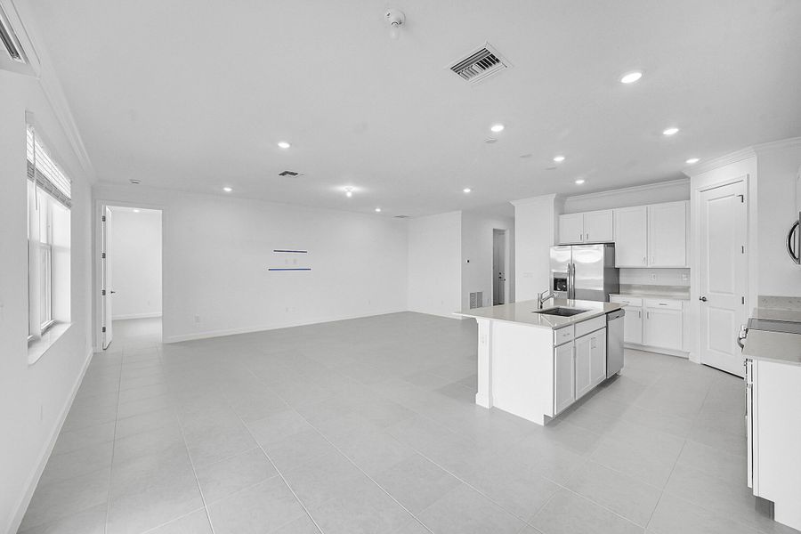 This single-story home boasts an intuitive layout that's living. The open concept floorplan includes a centralized kitchen, dining room and Great Room, which connects to an outdoor living area. The owner's suite offers privacy with an en-suite bathroom and an ideal back corner location, while the other bedrooms are located near the main living area. Prices, dimensions and features may vary and are subject to change.