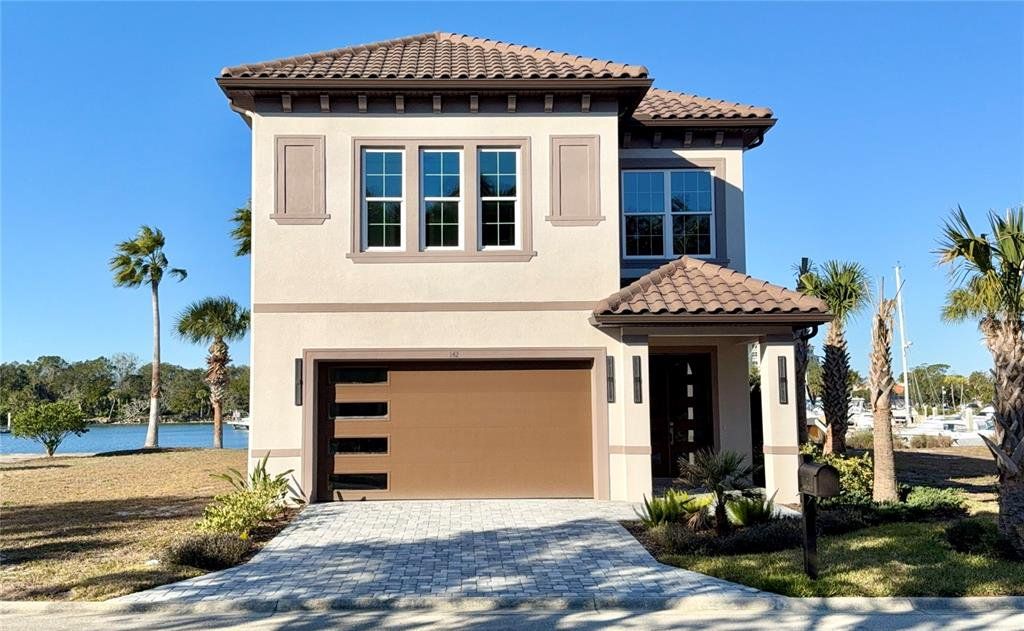 Welcome to 142 Harbor Village Point S, a brand-new two story showcase home in Yacht Harbor Village designed for modern coastal living in a peaceful marina setting. High-end finishes throughout, including porcelain tile flooring, quartz countertops, and a bright open-concept layout. The first floor welcomes you with an open foyer, private elevator access, two guest bedrooms, and a full bath. Upstairs, the main living level, includes a dramatic great room, open kitchen, and owner’s suite with an oversized walk-in closet and a spa-inspired bath complete with a rain head, backlit mirrors, and private water closet. Additional highlights include a deep three-car garage, private study, game room, and flexible layout that lives like two homes in one. A standout modern design with exceptional craftsmanship