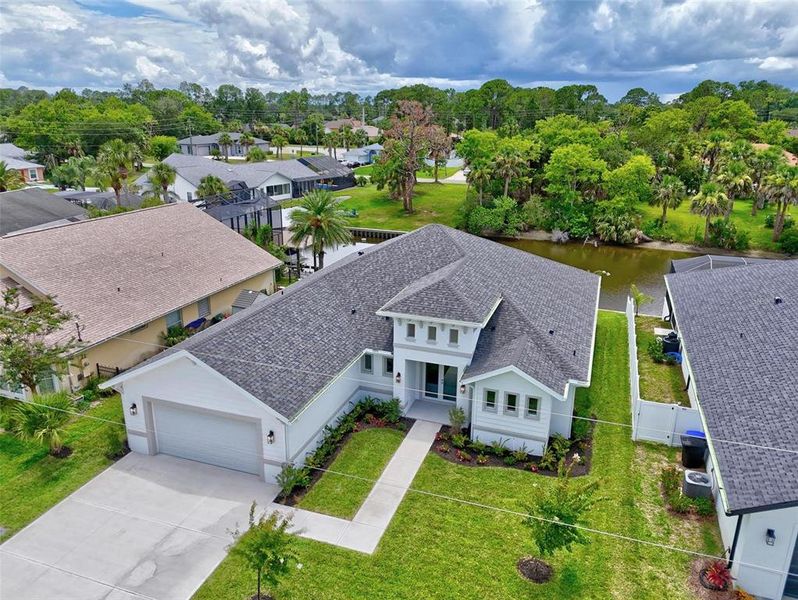 This exquisite, newly constructed 4 BDRM, 3 bath home with a 2-car garage offers the perfect blend of luxury and functionality. Located on a saltwater canal with direct access to the intracoastal waterway, this home is designed for both relaxation and entertaining. Boasting porcelain tile flooring throughout, the spacious interior includes a gourmet kitchen with 42" custom cabinetry, a hidden pantry, and recessed lighting. The master suite features a stand alone tub, a large shower with dual showerheads, and a rain shower for a spa-like experience. Additional highlights include a cabana bath with access from the lanai, Hurricane impact windows and doors. The home is equipped with spray foam insulation ensuring energy efficiency. Outside you'll find a new bulkhead, a 5 zone irrigation system, and underground utilities. For added convenience , there is storage above the garage with a retractable ladder. Priced to sell, Easy to show, on Sentrilock.