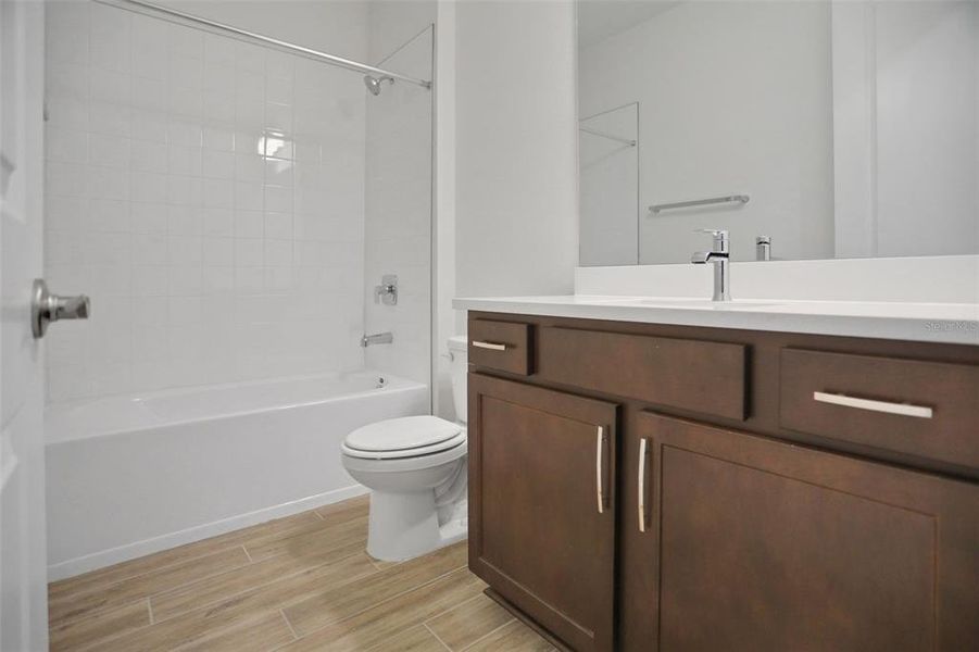 Move In Ready Arlington home is nestled on a picturesque lagoon lot, offering scenic views and tranquility right in your backyard. Located in Palmetto, the community is close to the serene Manatee River and stunning Gulf Coast beaches, making it ideal for both relaxation and recreation. The expansive open floor plan is perfect for both entertaining and everyday living. A covered lanai provides a perfect spot for outdoor relaxation and gatherings. The gourmet kitchen features a single wall oven, microwave with trim kit, electric cooktop, and stainless steel wall-mounted canopy hood. With 42" cabinets and a wrap-around cabinet option, there is ample storage. The large island serves as a focal point for meal preparation and socializing. The main suite offers perfect views of the lagoon out of the 2 large windows. The ensuite bathroom includes a dual vanity, shower and tub, and private water closet. A spacious walk-in closet provides ample storage. Technology & Security The home is equipped with an ULTRAFi Structured Wiring Package, including two 42" enclosures, five universal outlets (which include two CAT6 data lines and one RG6 cable line), a conduit running from the enclosures to the DMarc on the side of the home, and two service feeds (one CAT6 and one RG6). For security, there is a security keypad (IQ4 Panel) and an Alarm.com HD video doorbell. A White Glove Service is available after closing for a seamless transition into your new home. Community & Amenities The Seaire community features a 4.5-acre lagoon, high-speed internet, and eco-friendly amenities. Residents can explore the historic downtown Palmetto, which is filled with eclectic shops, eateries, and cultural attractions. Local parks, events, and festivals showcase the town's lively spirit.
