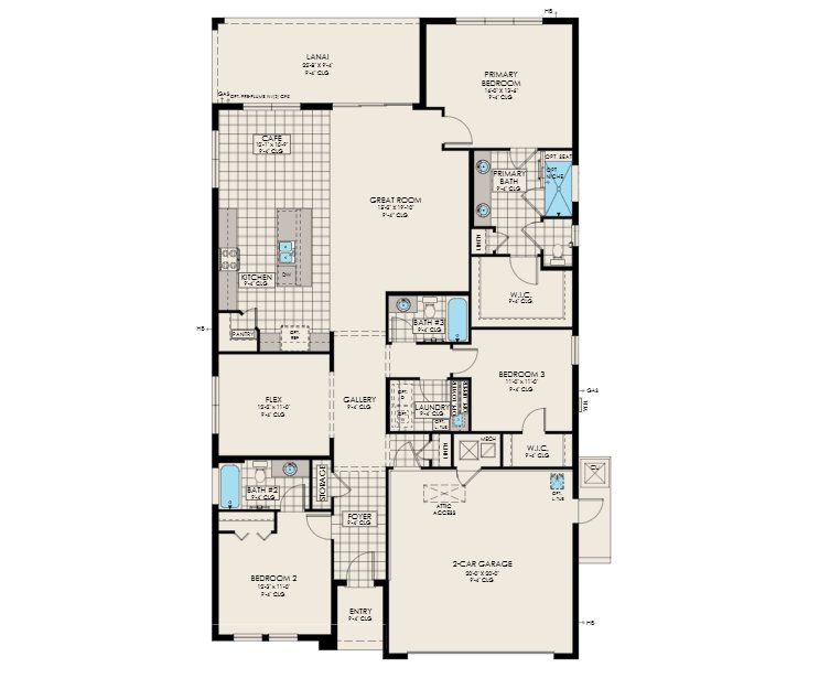 The Madison is a three bedroom three bathroom home with flex room and has flex options to make it both personal and versatile. The expansive open floor plan with a great room, café and kitchen provide easy flexible upgrades to expand and customize including a fireplace and gourmet kitchen.