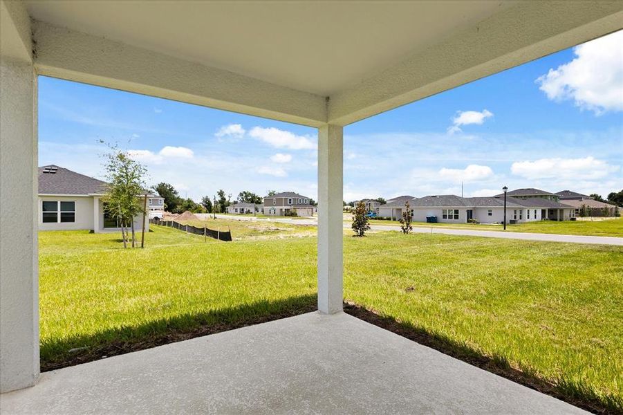 This stylish, single-story home showcases an open floor plan with elegant tile flooring and a spacious great room that boasts soaring ceilings. A dedicated laundry room adds everyday ease. The contemporary kitchen is equipped with an island, granite countertops, 36-in. upper cabinets, a Moen® faucet, a Kohler® stainless steel sink and Whirlpool® stainless steel appliances. The primary bedroom features a large walk-in closet and connected bath that offers a dual-sink vanity, linen closet and walk-in shower. The covered back patio is ideal for quiet mornings or lively get-togethers.