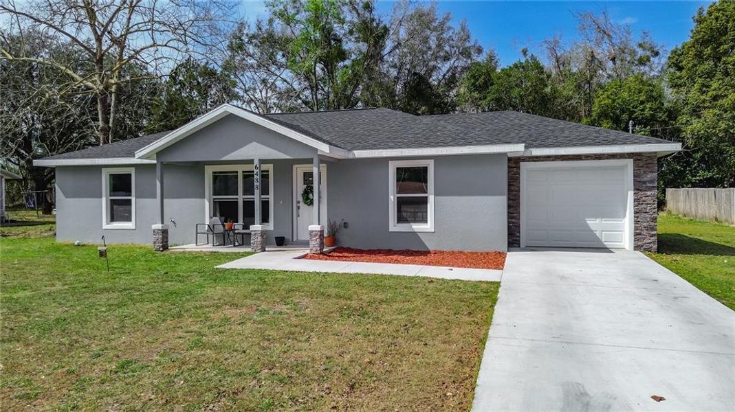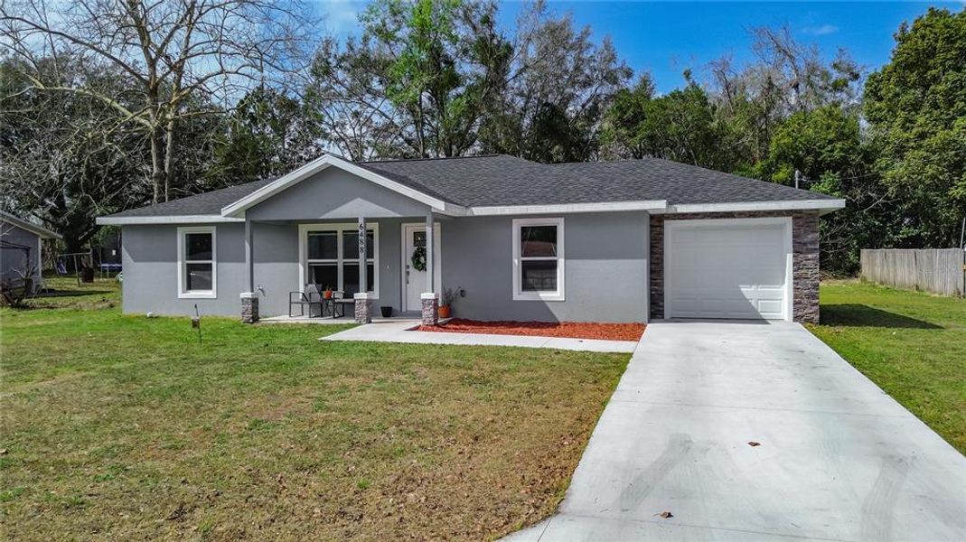 Curb appeal truly stands out with stone accents surrounding the garage and front pillars, delivering a custom-home look without the custom-home price tag. Enjoy peaceful mornings on the inviting front porch — the perfect spot for your rocking chair and a cup of coffee.