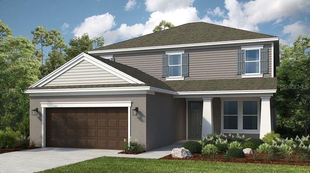 What's Special: Tub in Primary Bath | Corner Lot | Dedicated Home Office. New Construction - November Completion! Built by Taylor Morrison, America's Most Trusted Homebuilder. Welcome to the Bahama at 735 Sky Shade Drive in Indigo Creek. The Bahama blends timeless charm with everyday livability in a thoughtfully designed two-story layout. With four bedrooms and plenty of flexible space, this home is built for how you live. On the main floor, an open-concept kitchen, casual dining area, and gathering room with soaring two-story ceilings create a welcoming space for relaxing or entertaining. The gourmet kitchen features stainless steel appliances, a large island, upgraded countertops and cabinetry, a stylish apron sink, and direct access to the formal dining room. You'll also find 8' interior doors, oversized baseboards, and outdoor kitchen rough-ins that elevate both style and functionality. The downstairs primary suite offers privacy and ease, with a spacious bedroom, generous walk-in closet, and a luxurious bath complete with dual sinks, a private commode, and a separate shower and tub. A bright lanai spans the back of the home, perfect for enjoying Florida sunshine. Upstairs, a cozy loft and separate study add versatile living space, while three secondary bedrooms & one with a private bath and two sharing a hall bath & provide comfort for guests or everyday use. Additional Highlights Include: gourmet kitchen, and separate tub and shower in primary bath. Photos are for representative purposes only. MLS#TB8377750