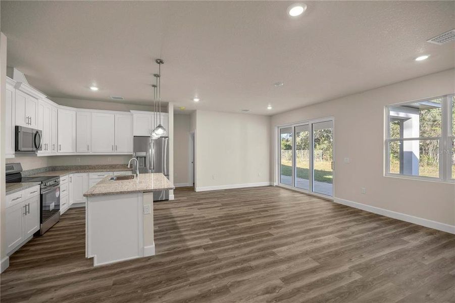 Location !!! Locations!!! –4-Bed,3-Bath Home in Citrus Springs! This exquisite 1,931 sq. ft. brand-new 4-bedroom, 3 bathroom home offers a perfect blend of modern elegance and functional design. The open-concept floor plan is filled with natural light, creating a warm and inviting atmosphere. The gourmet kitchen boasts quartz countertops, sleek ceiling-height white cabinetry, stainless steel appliances, and a spacious island—ideal for both cooking and entertaining. Throughout the home, luxury vinyl plank flooring provides a seamless, low-maintenance look—no carpet anywhere! Expansive double sliding doors lead to a private backyard, offering plenty of space for outdoor relaxation, gatherings, or even future customization. A charming front balcony area adds to the home’s curb appeal, while the double-car garage provides ample storage and parking. Located in the highly desirable Citrus Springs community, this home comes with no HOA restrictions, giving you the freedom to enjoy your property as you see fit. Conveniently situated near local springs, shopping, dining, and outdoor recreation, this is the perfect place to call home. Don’t miss this incredible opportunity—schedule your private tour today!