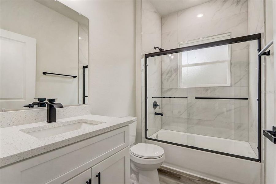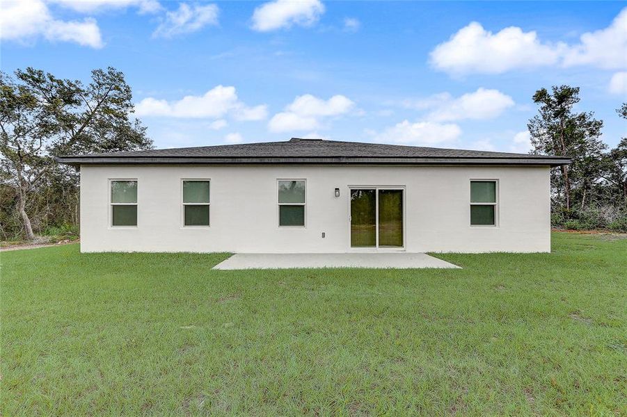 Welcome to 501 Marion Oaks Golf Way in Ocala! Built April 2025, never occupied, this energy-efficient block construction home sits on an oversized lot with plenty of room for a pool and/or summer kitchen. Inside you're greeted with meticulous attention to detail making this home a truly turnkey opportunity. Functional, open-concept layout and high-end finishes create an effortless living experience. The kitchen is perfectly connected to the dining and living areas for easy entertaining with the massive island. Quartz countertops, luxury vinyl flooring, soft-close cabinets, bathrooms with shower glass enclosures, designer lighting and hardware throughout. Four spacious bedrooms including the primary with dual closets and ensuite with stand alone tub, oversized tile shower and dual vanity. Two car garage, inside laundry room/mud room entry. Outside sliding doors open to a concrete patio and soon to be fenced in backyard with no rear or side neighbors for ultimate privacy. With NO HOA the options are limitless to expand how you please. A rare opportunity to own a move-in-ready home with exceptional potential and space to expand. Conveniently located with everyday essentials just minutes away: Walgreens (2.2 mi), Aldi (2.6 mi), Domino’s (2.2 mi), and Alkimia Coffee House (2.5 mi). Schedule your showing today!