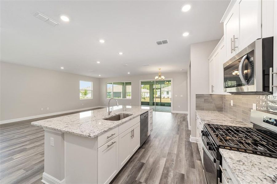 The Ariana Model in LongLeaf Ridge at On Top of the World is a stunning new construction home designed for comfortable living in Ocala’s premier 55+ active adult community. Featuring 2 bedrooms, 2 bathrooms, a flex room, vinyl flooring, and a spacious 2+ car garage, this home is filled with luxurious finishes. The kitchen is a masterpiece of both style and functionality, designed to delight culinary enthusiasts and home entertainers alike. Featuring sleek stainless-steel appliances, quartz countertops that provide a polished, durable surface, and a stunning tile backsplash that adds a sophisticated touch, this space is as beautiful as it is practical. The staggered cabinetry with crown molding offers ample storage while elevating the room’s aesthetic. A spacious walk-in pantry ensures effortless organization, while the oversized island serves as the perfect focal point for meal preparation and casual gatherings. Whether you're cooking an elaborate feast or enjoying a quiet morning coffee, this gourmet kitchen seamlessly blends elegance and convenience to make everyday moments feel extraordinary. At the front of the home, the flex room with French doors provides a private space for an office or hobby room, while the second bedroom enjoys abundant natural light and a spacious closet. The adjacent guest bathroom features a single vanity with a quartz counter and a tile shower/tub combination. The primary suite offers a three-panel window overlooking the backyard, a generous walk-in closet, and a spa-like en suite bathroom with his and her sinks, quartz counters, a tiled shower with a built-in bench and glass door, and a linen closet. For those who enjoy outdoor living, the screened lanai is the perfect spot to relax. Located in a gated community with exceptional amenities and golf cart access to two shopping centers, this home offers both convenience and luxury. If you're looking for a brand-new home with elegant finishes throughout, this could be an excellent choice! Give us a call to schedule your showing today!