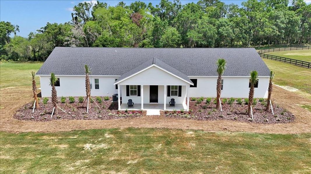 Exceptional 34-acre equestrian estate. Discover this new, turnkey horse property on 33.53 acres of high and dry land, thoughtfully designed for horse and rider. Offered as two separate parcels, this estate combines luxury living with premium equestrian amenities. The custom four-bedroom, 2.5-bath home features elegant porcelain tile throughout, brushed gold tone fixtures, soaring ceilings, quartz countertops and a spacious front porch with paver flooring, ideal for relaxing and taking in the views. Two lighted electric gated entrances plus a third separate drive offer ideal access for trailer parking or client ship-ins. Equestrians will appreciate the 10-stall block barn featuring a 400-square-foot studio apartment with kitchen, full bath, laundry with abundant cabinetry, feed room, tack room, hot/cold wash stall and a breezy 16-foot-wide center aisle. Each 12-by-12-foot matted stall includes lights and fans for optimal comfort. Water is run to all six paddocks and two large fields, all conveniently near the barn. Enjoy a 4/10-mile grass uphill gallop, well-established pastures and ample room to add a cross-country course, arenas or additional structures. Extensive landscaping surrounds the home, barn and gated entries, all with irrigation. Don't miss this extremely rare opportunity to own a new equestrian estate.