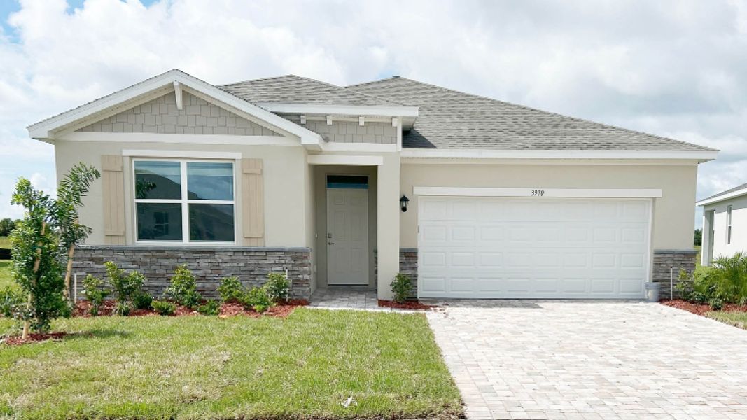 The Clifton is a stunning one-story floorplan in our Cypress Bay West Freedom Community in Palm Bay, Florida. Constructed with durable concrete block, this 3-bedroom, 2-bathroom home offers 1,816 square feet of comfortable living space. It also includes a two-car garage and a covered rear porch for outdoor relaxation.