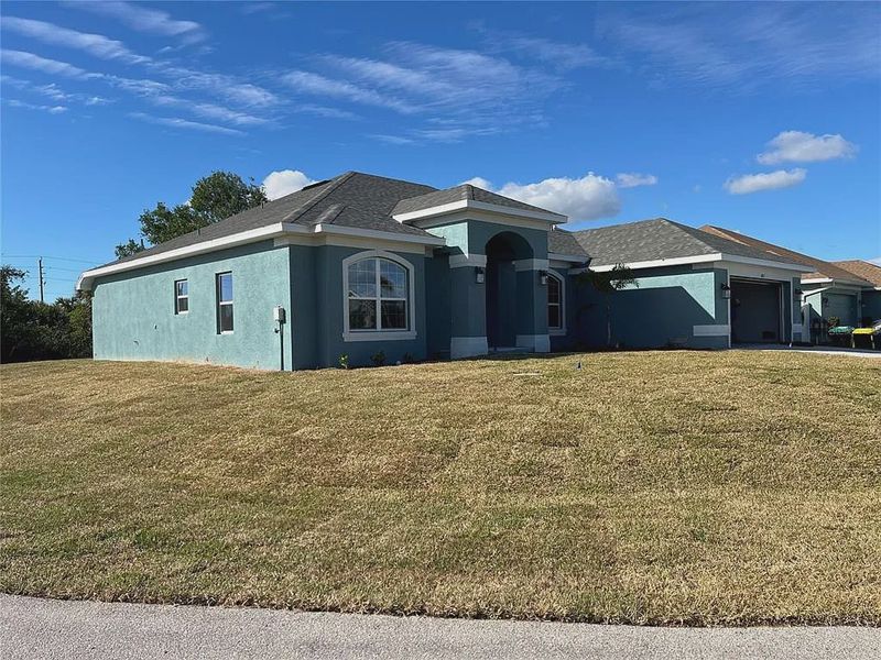 This beautiful New Construction CORNER LOT home has 2330 SQ. FT. of heated space, with 4 bedrooms, 2 bathrooms and a 2 Car Garage! The Upgrades Included: Open Floor Plan, Ceramic Plank Tile- Whole House, Bathrooms are Tiled, Pair of exterior French- Glass Doors leading to 23' x 8' Covered Lanai, Granite Counter tops in Kitchen and Baths, Stainless Steel Appliances (Range, Microwave & Garbage Disposal) Upgraded Cabinets, Step Ceiling in the Primary BDRM and Dining Room, a 5 FT. Tiled Shower w/ Tiled walls and floor in Primary BTHRM ILO of Garden Tub, & Irrigation System w/ Floratam Sod. All of our New Homes come with a 1 year/2 year/10 year Warranties. Move in Worry free! ** REALTORS are required to be present on Initial visit to register your Home buyer and must obtain a completed Co-Broke Form ~~ Subject to Errors & Omissions ~~