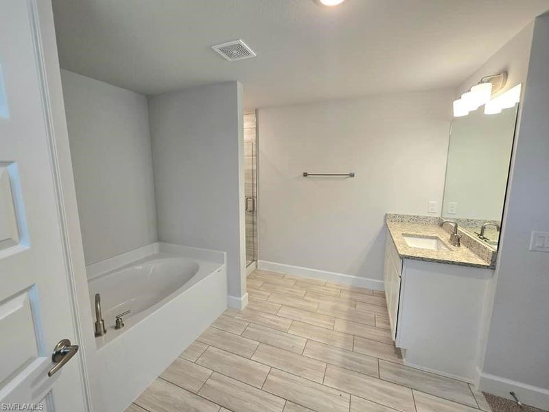 Beautiful 3/Bedrooms plus Formal Living Room and Dining Room - 2 Baths - 2/Car Garage - Pair of Exterior French Glass Door at Family Room - Separate Tile Shower in Master Bathroom - Granite Countertops in Kitchen and Baths - Tile ALL Except in Bedrooms - Step Ceiling in the Master Bedroom (90 Degrees) - Stainless Steel Appliances (Stove, Microwave, Dishwasher) - Upgraded Cabinets - Irrigation System Only (Bahia Sod) - Lanai 21'Wx10'D (No screen).