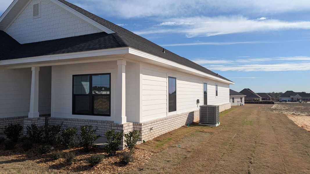 Popular Craftsman 3 BR/2 BA home with Hardiboard siding and brick skirt. Spacious master bedroom (14x22), 9' ceilings throughout, 8' entry doors, quartz countertops in kitchen and baths, durable Coretec Pro Plus LVP flooring throughout. No carpet. Tray ceiling in master with a large walk in closet, separate tub and shower. Generous covered patio. Fully sodded yard, sprinkler system, well+pump. Garage opener, self-close cabinet doors+drawers. Community pool to be built by developer.